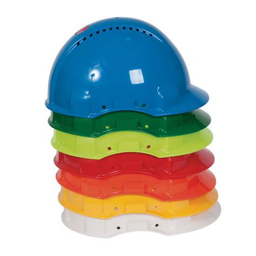 Dielektrikus munkasisak négypontos textília rögzítéssel és szorító kerékkel. A sima formaterv megakadályozza a sisak beakadását. Tartozék szellőző szelepekkel. A beépített állapotjelző a folyamatos fakulással jelzi, mikor jött el a sisakcsere ideje. Használható építő- és könnyűiparban.