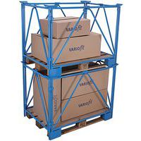 Hegesztett acél felépítmények euro-raklapokhoz áruk és anyagok tárolására. Maximálisan kihasználják a raklap tárolóterületét. A kialakítás garantálja a nagy teherbírást és a három darab könnyű egymásra rakását (csak álló helyzetben). Keret felületkezelés porfestékkel RAL skála szerint. Ütés- és karcálló.