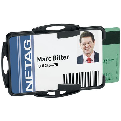 Kemény borítás szabad területekkel a jelvény gyorsabb eléréséhez. Kiemelt tartó koronggal, zsinórral, klipszel vagy lánccal kombinálva. Két lyuk, így vízszintesen vagy függőlegesen is hordható.