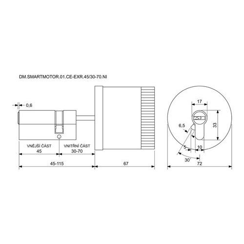 Digitális motor, amely az ajtó belsejéből vezérli a hengert, 45/30-70 mm, fekete Digitális motor, amely az ajtó belsejéből vezérli a hengert, 45/30-70 mm, fekete