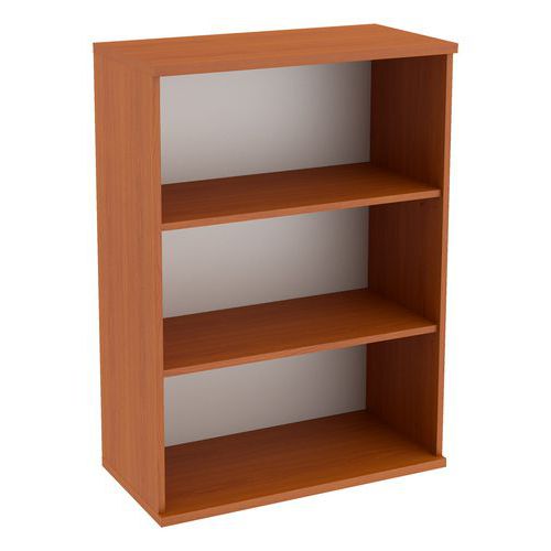 Nyitott irodai szekrény két színváltozatban, két polccal. Állítható magasságú kiegyenlítő csavarok.
