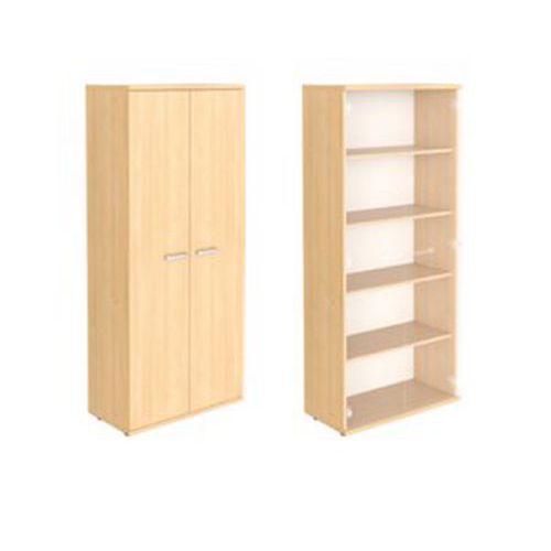 Magas irodai szekrény két színváltozatban, ajtóval és négy polccal. Kiegyenlítő csavarok a magasság finombeállításához a toldóelem miatt.