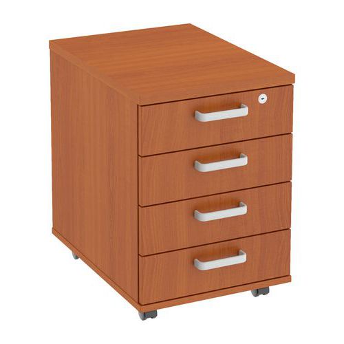 Mobil tároló irodába két színváltozatban. Fém fiókok golyós mozgatással, zárható felső fiók. árnyalat: juhar, cseresznye Oxford méretek ma × szé × mé: 60 x 43,2 x 56 cm anyaga: laminált farostlemez, fém fiókok és fogantyúk fiókok száma: 4 kivitel: mobil zár: felső fiók fékezett kerekek: nem 2 mm ABS élek