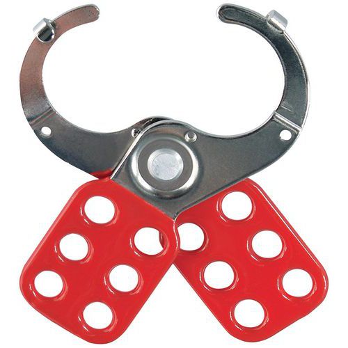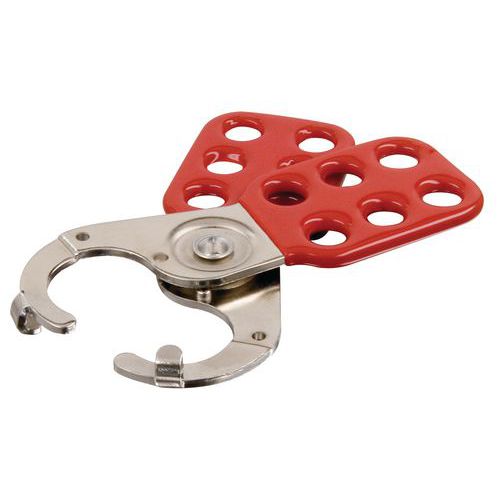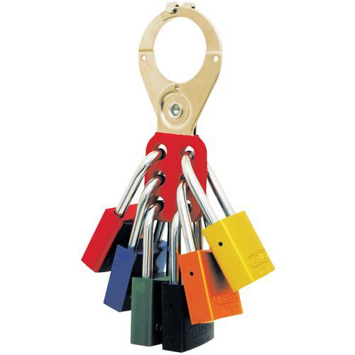 Gyűjtőlakat egy pont összesen 6 lakattal történő lezárására. A kinyitásához mind a 6 dolgozónak a saját kulcsával együtt kell jelen lennie. A max. 9 mm kengyelátmérőjű lakatokhoz alkalmas. Keményített acélból készül, PVC bevonattal van ellátva.