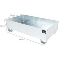 Felfogó kádak horganyzott vagy lakkozott kivitelben. Felfogásra és védelemre szolgálnak a veszélyes anyagok szivárgása ellen. Vízre veszélyes anyagok és gyúlékony folyadékok tárolására alkalmas. Kiegészítő tartozékok rendelhetők - horganyzott rács, 2 forgógörgő készlet (ebből 1 fékezett) horganyzott fogantyúval, hosszanti kiegészítő lécek a kád könnyű elhelyezéséhez raklap polcállványok tartóelemeire, horganyzott hordóállvány egy 200 l hordó tárolására, horganyzott henger felépítmény hordóállványra való felhelyezéshez, a felfogó kád lefedése zárható ajtókkal Max. sztatikus terhelés (kg) : 480 kg Gyártói garancia az ügyfélnek : 10 év