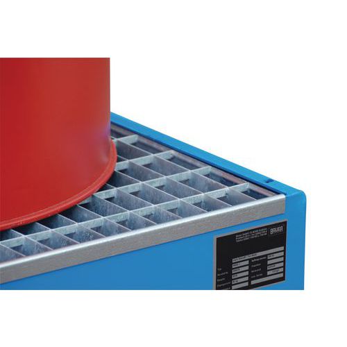 Felfogó kádak horganyzott vagy lakkozott kivitelben. Felfogásra és védelemre szolgálnak a veszélyes anyagok szivárgása ellen. Vízre veszélyes anyagok és gyúlékony folyadékok tárolására alkalmas. Kiegészítő tartozékok rendelhetők - horganyzott rács, 2 forgógörgő készlet (ebből 1 fékezett) horganyzott fogantyúval, hosszanti kiegészítő lécek a kád könnyű elhelyezéséhez raklap polcállványok tartóelemeire, horganyzott hordóállvány egy 200 l hordó tárolására, horganyzott henger felépítmény hordóállványra való felhelyezéshez, a felfogó kád lefedése zárható ajtókkal Max. sztatikus terhelés (kg) : 480 kg Gyártói garancia az ügyfélnek : 10 év
