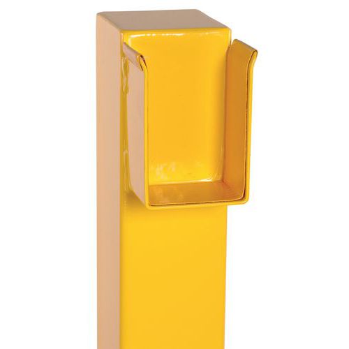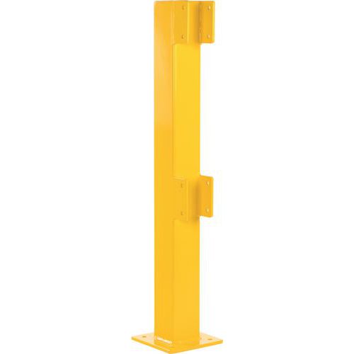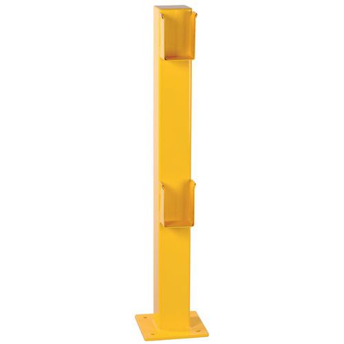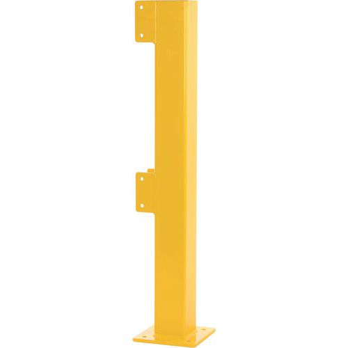 Acéloszlopok biztonsági korlátokhoz, teljes mértékben az adott helyiséghez igazíthatók. Sárga szín a jó láthatóságért. Garantált stabilitás a padlón a szerelőlemeznek köszönhetően. Horganyzott acélból készült, beltéri használatra. Könnyű telepítés.