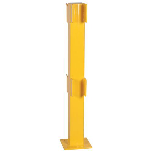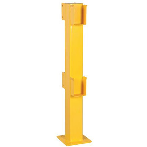 Acéloszlopok biztonsági korlátokhoz, teljes mértékben az adott helyiséghez igazíthatók. Sárga szín a jó láthatóságért. Garantált stabilitás a padlón a szerelőlemeznek köszönhetően. Horganyzott acélból készült, beltéri használatra. Könnyű telepítés.