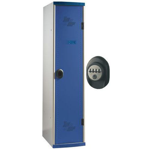 | Termék neve | Acial hegesztett öltözőszekrény válaszfallal, 1 rekeszes, 400 mm, számkódos zárral, szürke/kék |