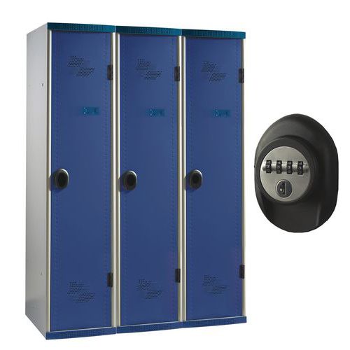 | Termék neve | Acial hegesztett öltözőszekrény válaszfallal, 3 rekeszes, 400 mm, számkódos zárral, szürke/kék |