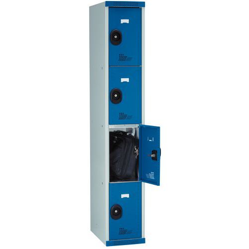 | Termék neve | Acial hegesztett öltözőszekrény, 1 oszlopban 4 rekesszel, 300 mm, hengerzárral, szürke/kék |
