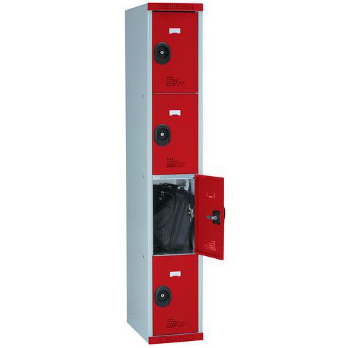 | Termék neve | Acial hegesztett öltözőszekrény, 1 oszlopban 4 rekesszel, 300 mm, hengerzárral, szürke/piros |