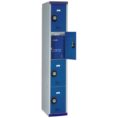 | Termék neve | Acial hegesztett öltözőszekrény, 1 oszlopban 4 rekesszel, 300 mm, számkódos zárral, szürke/kék |