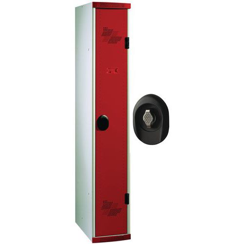 | Termék neve | Acial hegesztett öltözőszekrény, 1 rekeszes, 300 mm, forgóretesszel, szürke/piros |