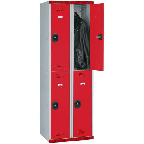 | Termék neve | Acial hegesztett öltözőszekrény, 2 oszlopban 4 rekesszel, 300 mm, hengerzárral, szürke/piros |