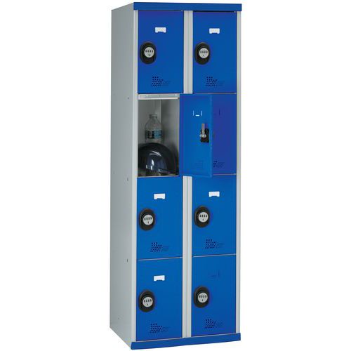 | Termék neve | Acial hegesztett öltözőszekrény, 2 oszlopban 8 rekesszel, 300 mm, számkódos zárral, szürke/kék |