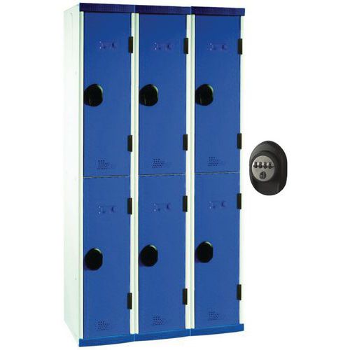 | Termék neve | Acial hegesztett öltözőszekrény, 3 oszlopban 6 rekesszel, 300 mm, számkódos zárral, szürke/kék |