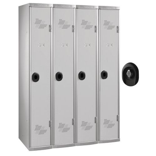 | Termék neve | Acial hegesztett öltözőszekrény, 4 rekeszes, 300 mm, forgóretesszel, szürke/szürke |
