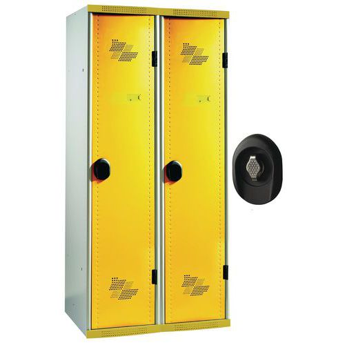 | Termék neve | Acial hegesztett öltözőszekrény válaszfallal, 2 rekeszes, 400 mm, forgóretesszel, szürke/sárga |