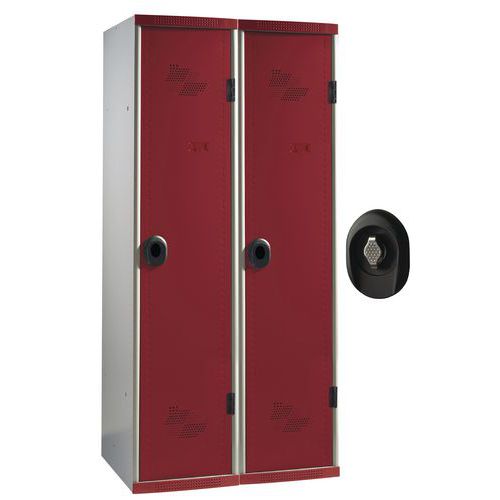 | Termék neve | Acial hegesztett öltözőszekrény válaszfallal, 2 rekeszes, 400 mm, forgóretesszel, szürke/piros |