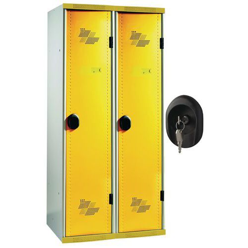 | Termék neve | Acial hegesztett öltözőszekrény válaszfallal, 2 rekeszes, 400 mm, hengerzárral, szürke/sárga |