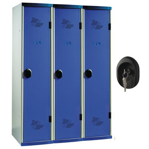 | Termék neve | Acial hegesztett öltözőszekrény válaszfallal, 3 rekeszes, 400 mm, hengerzárral, szürke/kék |