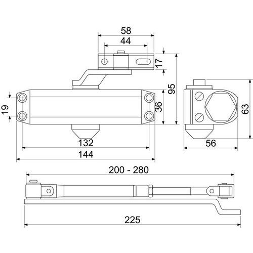 Ajtózáró rögzítési lehetőséggel az ajtózárón belül, beltéri ajtókhoz. Záróerő 2 az EN1154 alapján. Állítható zárási és billenési sebesség. Ajtóra szerelhető.