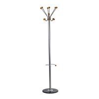 Álló fogas hét kampóval a ruhák tárolására. A kampók dizájnosan, spirálszerűen vannak elhelyezve, a hegyük krómozott. Beépített esernyőállvánnyal. A stabilitást kör alakú talp biztosítja.