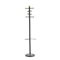 Szabadon álló fogas, alkalmas előterekbe, irodákba vagy belépő csarnokokba. Stabil fém szerkezet márvány alapzattal és masszív fa részletek bükk árnyalatban. Az állványt nyolc ruhaakasztó és egy esernyőtartó alkotja. Felületkezelés porlakkal, krómozott kiegészítőkkel.