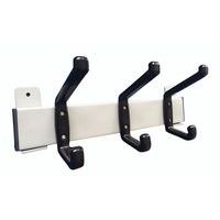 Műanyag fogas dupla krómozott kampókkal falra történő rögzítéshez.