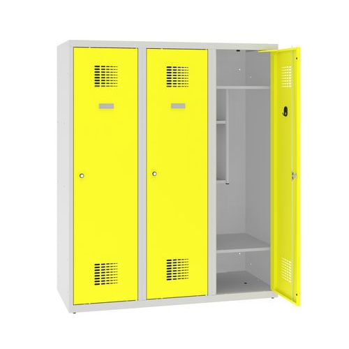Alacsony iskolai öltözőszekrény, 3 ajtós, 400 mm, szürke/sárga, hárompontos hengerzárral Alacsony iskolai öltözőszekrény, 3 ajtós, 400 mm, szürke/sárga, hárompontos hengerzárral