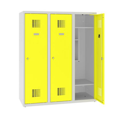 Alacsony iskolai öltözőszekrény, 3 ajtós, 400 mm, szürke/sárga, hengerzárral Alacsony iskolai öltözőszekrény, 3 ajtós, 400 mm, szürke/sárga, hengerzárral