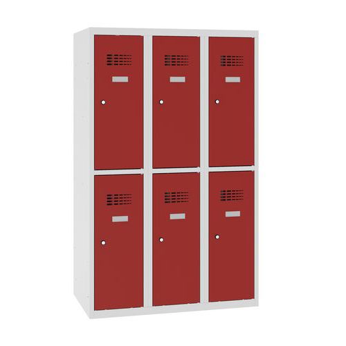 Hatrekeszes, alacsony, hegesztett iskolai öltözőszekrények. Iskolákba, kis magasságának köszönhetően alsó tagozaton is jó választás. Kiváló minőségű acéllemezből készül porszórt felületkezeléssel. A szekrényben két könyvespolc és egy ruhaakasztó fogas található. Öntapadós névtáblával az ajtókon. A jobb légáramlás érdekében az ajtók tetején szellőzőrácsok találhatók. Az ajtók 90°-ban nyithatók. Kulcsra zárhatók, hengerzárral.