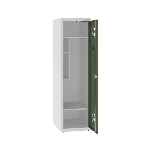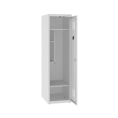 Alacsony, hegesztett öltözőszekrények. Akár alsó tagozaton is jó választás. Kiváló minőségű acéllemezből készül. Porszórt felületkezeléssel. A szekrényben két könyvespolc, egy cipőtartó polc, 2 ruhaakasztó fogas, az ajtókon pedig öntapadós névtábla található. A ruhák kipárolgását hatékonyan elvezetik az ajtók alján és tetején található szellőzőrácsok. Az ajtók 90°-ban nyithatók. Hárompontos hengerzárral zárhatók.