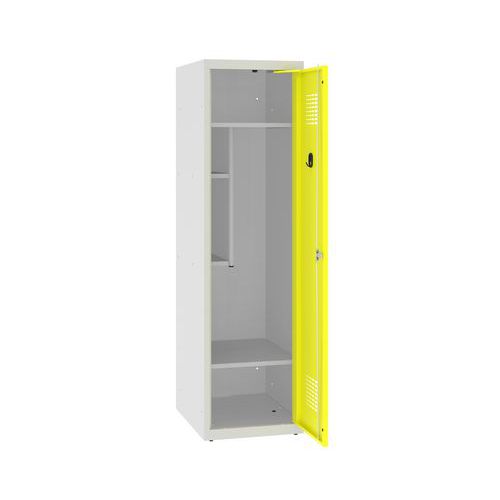 Alacsony iskolai öltözőszekrény, egyajtós, 400 mm, szürke/sárga, hárompontos hengerzárral Alacsony iskolai öltözőszekrény, egyajtós, 400 mm, szürke/sárga, hárompontos hengerzárral