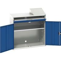 Tartalmaz egy horganyzott, állítható magasságú polcot, 75 kg teherbírású, kábelnyílással és egy ferde íróasztallal.