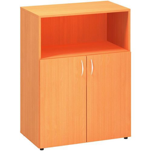 Közepes irodai szekrények ajtókkal és nyitott polccal öt színkivitelben.
