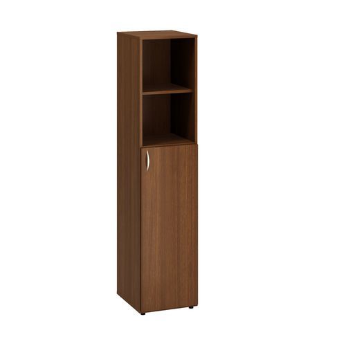 Alfa 500 magas, keskeny szekrény, 178 x 40 x 47 cm, nyitott polccal és ajtóval - jobbos kivitel, dió mintázat