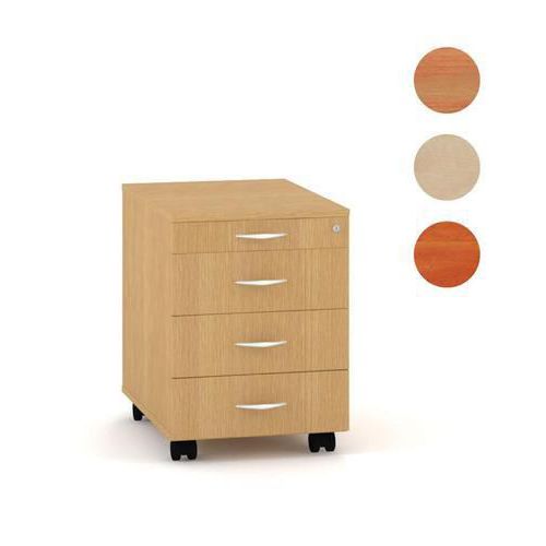 Irodai mobil tárolók dokumentumok, írószerek stb. tárolására. A fiókblokkolás megakadályozza a felborulást. A tároló központi zárral rendelkezik. Laminált farostlemezből készül, vastagsága: 25 mm. A váz ABS éle 1 mm, a fiókhomlokzat 2 mm. A tároló nem rendelkezik fékezett görgőkkel. A fiókok váza fém, műanyag görgők.