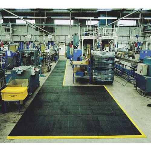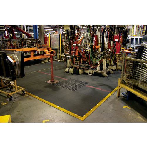 - Álláskönnyítő szőnyeg lyukak nélküli kivitelben alkalmas gyakori használatra. A padlóburkolók két oldalon ékekkel, a másik két oldalon nyílásokkal vannak ellátva, melyek segítségével egymáshoz rögzíthetők. A szőnyeg rövid ideig ellenálló az olajokkal, zsírokkal, és a 160°C-ig terjedő hőmérséklettel szemben, valamint a kiömlött olvadt üveggel szemben is. A tömör padlóburkolók kombinálhatóak a lyukas padlóburkolókkal. Kiegészíthető rámpás élekkel, ékkel vagy nyílásokkal. Megfelel a csúszásgátlási szabványnak.