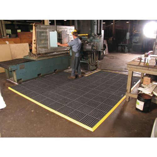 - Az álláskönnyítő szőnyeg alkalmas frekventált munkakörnyezetbe, például gyártóhelyekre stb. A lyukak lehetővé teszik a vízelvezetést a felületéről. Az egyes padlóburkoló lapok összekapcsolhatók. Kiegészíthető lejtős élekkel.