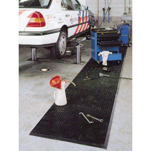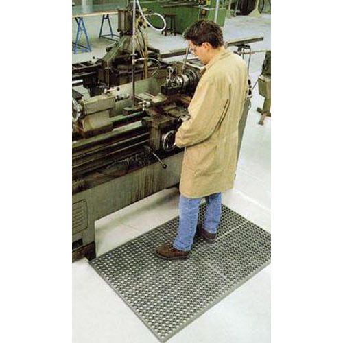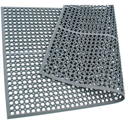 - Az álláskönnyítő szőnyeg szürke színben természetes gumiból készült. Használható lábtörlő szőnyegként is. Ellenáll az olajok és a kenő-hűtőfolyadékok rövid idejű hatásának.