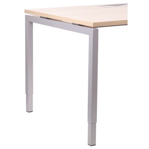 A Misao egyenes kialakítású irodai asztalok, állítható magasságú U-alakú lábakkal. Felső lap 25 mm vastag, melaminnal bevont forgácslapból, 2 mm-es ABS élekkel. Asztali kivágással a kábelkezeléshez. Könnyű össze- és szétszerelés .