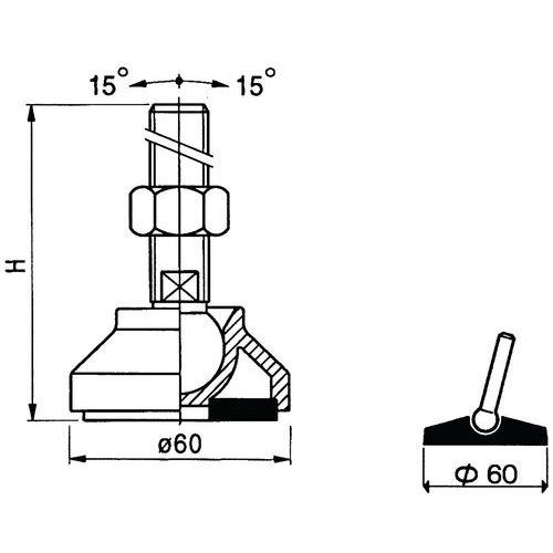 | Termék neve | Rozsdamentes acél állítható láb, talpátmérő 60 mm, rúd anyaga sárgaréz |