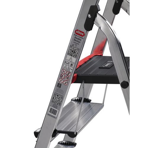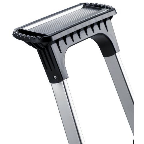 Alumínium lépcsők ideálisak otthoni használatra. A létra nagyon megbízható és stabil. Munka közben használhatja a praktikus SmartBoxot, és elhelyezheti benne a munkaeszközöket. Az ergonomikus HandGrip fogantyú lehetővé teszi az emelvény egyszerű, kényelmes és biztonságos összecsukását. A széles lépcsők kiváló stabilitást biztosítanak.
