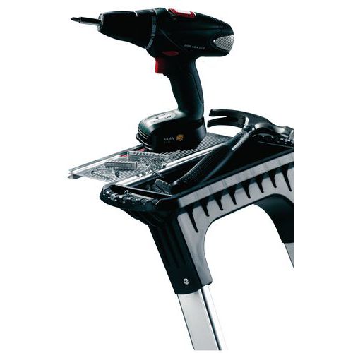 Alumínium lépcsők ideálisak otthoni használatra. A létra nagyon megbízható és stabil. Munka közben használhatja a praktikus SmartBoxot, és elhelyezheti benne a munkaeszközöket. Az ergonomikus HandGrip fogantyú lehetővé teszi az emelvény egyszerű, kényelmes és biztonságos összecsukását. A széles lépcsők kiváló stabilitást biztosítanak. Max. terhelés (kg) : 150
