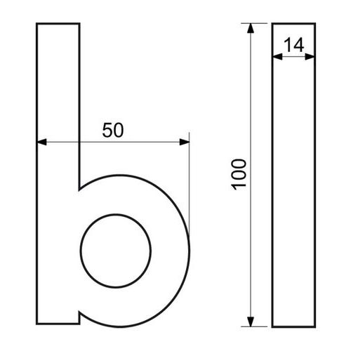 Alumínium szám 3D kivitelben, csiszolt felülettel, „B” jel, fekete Alumínium szám 3D kivitelben, csiszolt felülettel, „B” jel, fekete