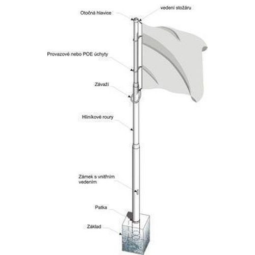 Alumínium zászlóárbocok külső huzalvezetéssel. Többféle magassági kivitelben kaphatók. Az árbocok két (5 - 6 m) vagy három (7 - 10 m) részből állnak. Zászló felhúzása és levétele huzal segítségével. Az eloxált felület nagyobb ellenállóságot biztosít az időjárás viszontagságaival szemben.