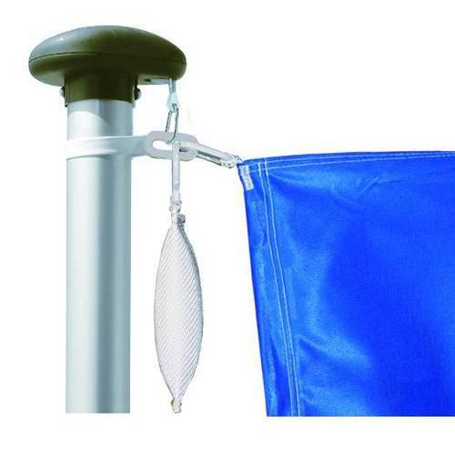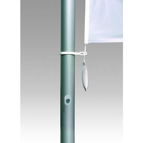 2 csiga a tetején, 2 golyós súly a zászló kifeszítéséhez és kitűzéséhez, 5 műanyag bilinccsel, ékes talajrögzítővel együtt szállítjuk, felületkezelés ezüst eloxálással