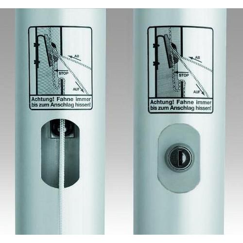 Fém zászlótartó árbocok beépített rejtett huzalvezetéssel különböző magasságú változatokban. Zászlófelhúzás a tetején található 2 csiga segítségével. 2 golyós súly a zászló egyszerű kitűzéséért és felhúzásáért. Az árbocok zárható rendszerrel és biztonsági huzalcsipesszel vannak ellátva az ellensúly akaratlan leesésének megakadályozásáért. Az eloxált felület nagyobb ellenállóságot biztosít az időjárás viszontagságaival szemben.